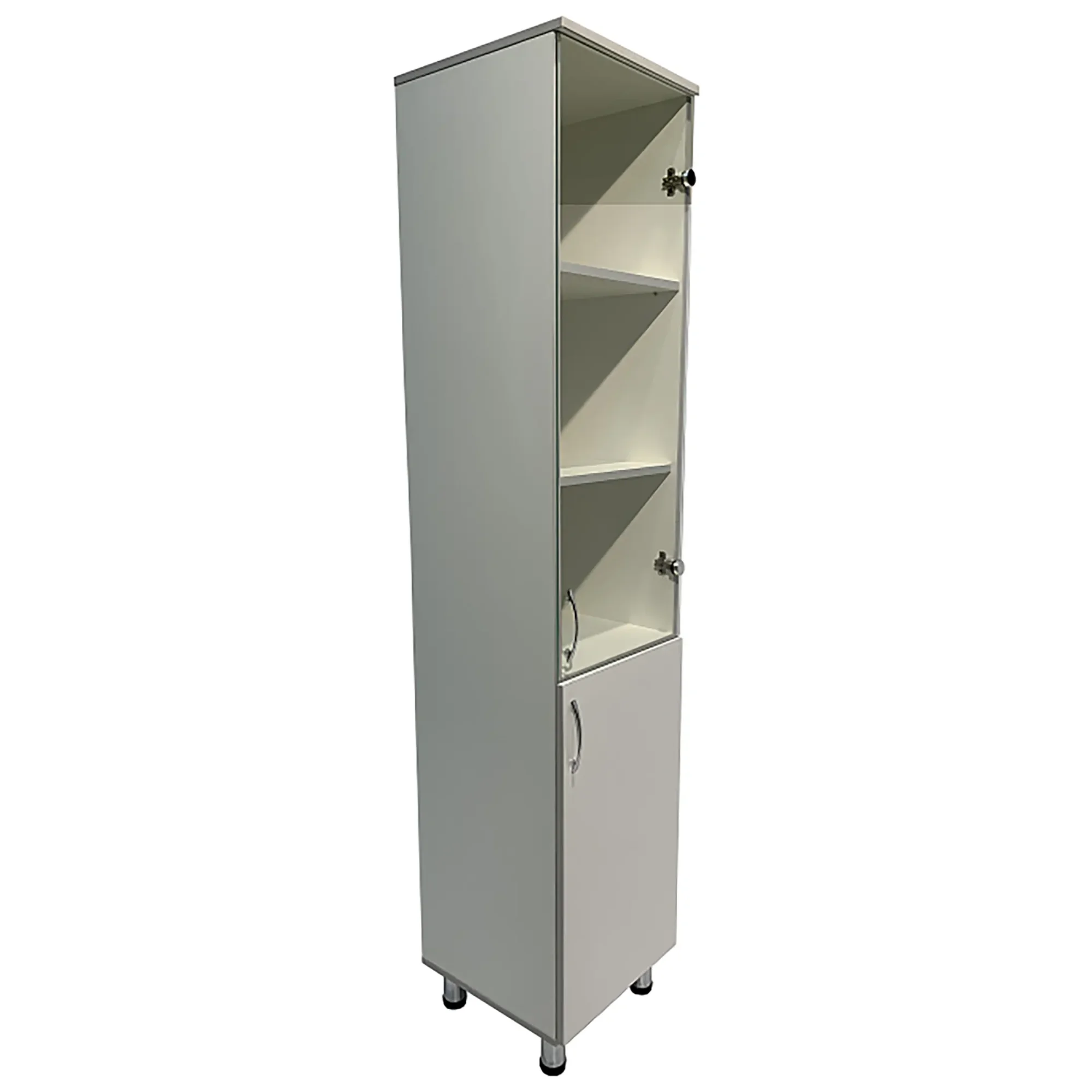 - Ниша шкафа разделена на отделения, что помогает эффективно организовать хранение и быстро находить необходимые материалы.
