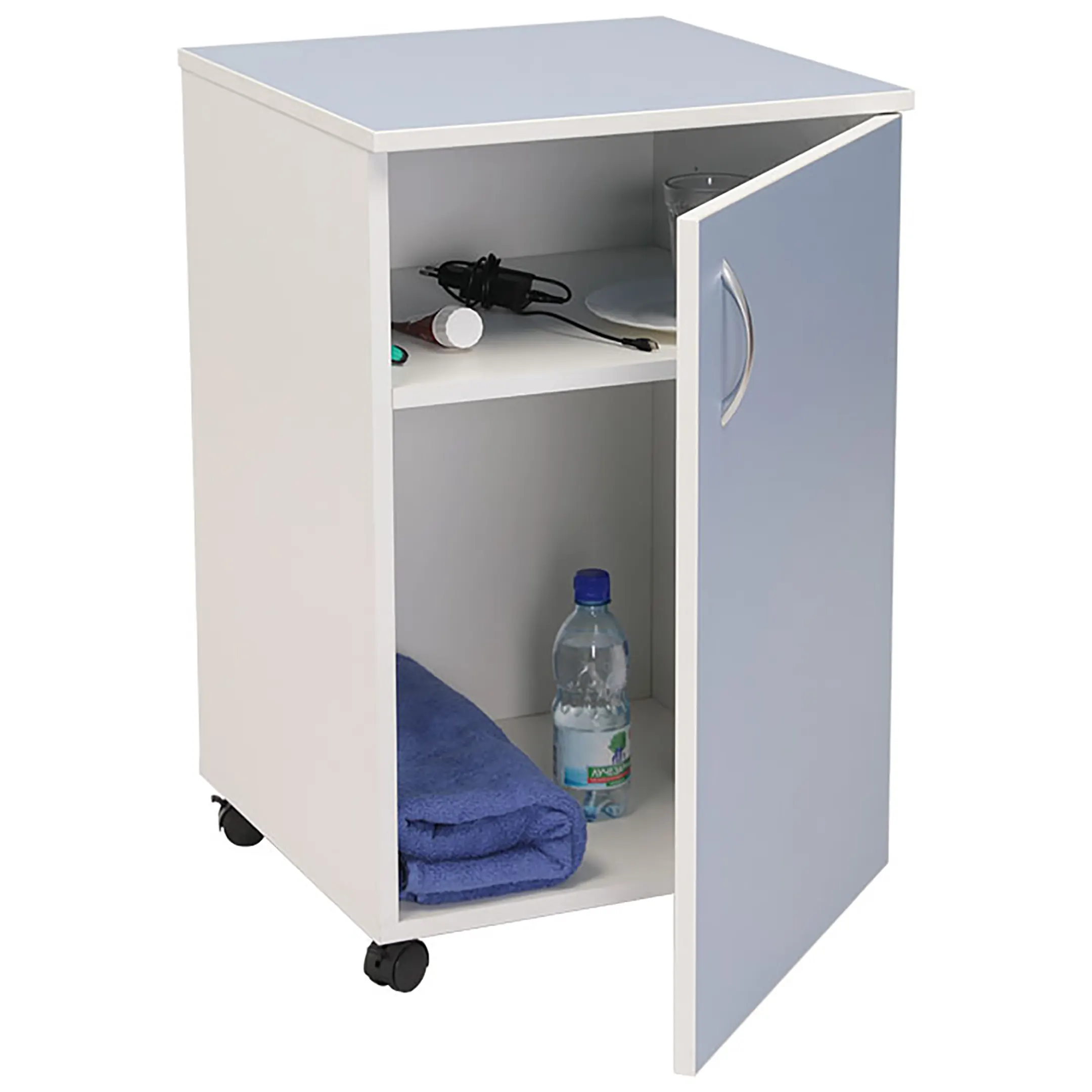 Тумба может быть использована для медицинских инструментов, небольшой аппаратуры или в качестве приставного элемента мебели у рабочего стола или кровати.