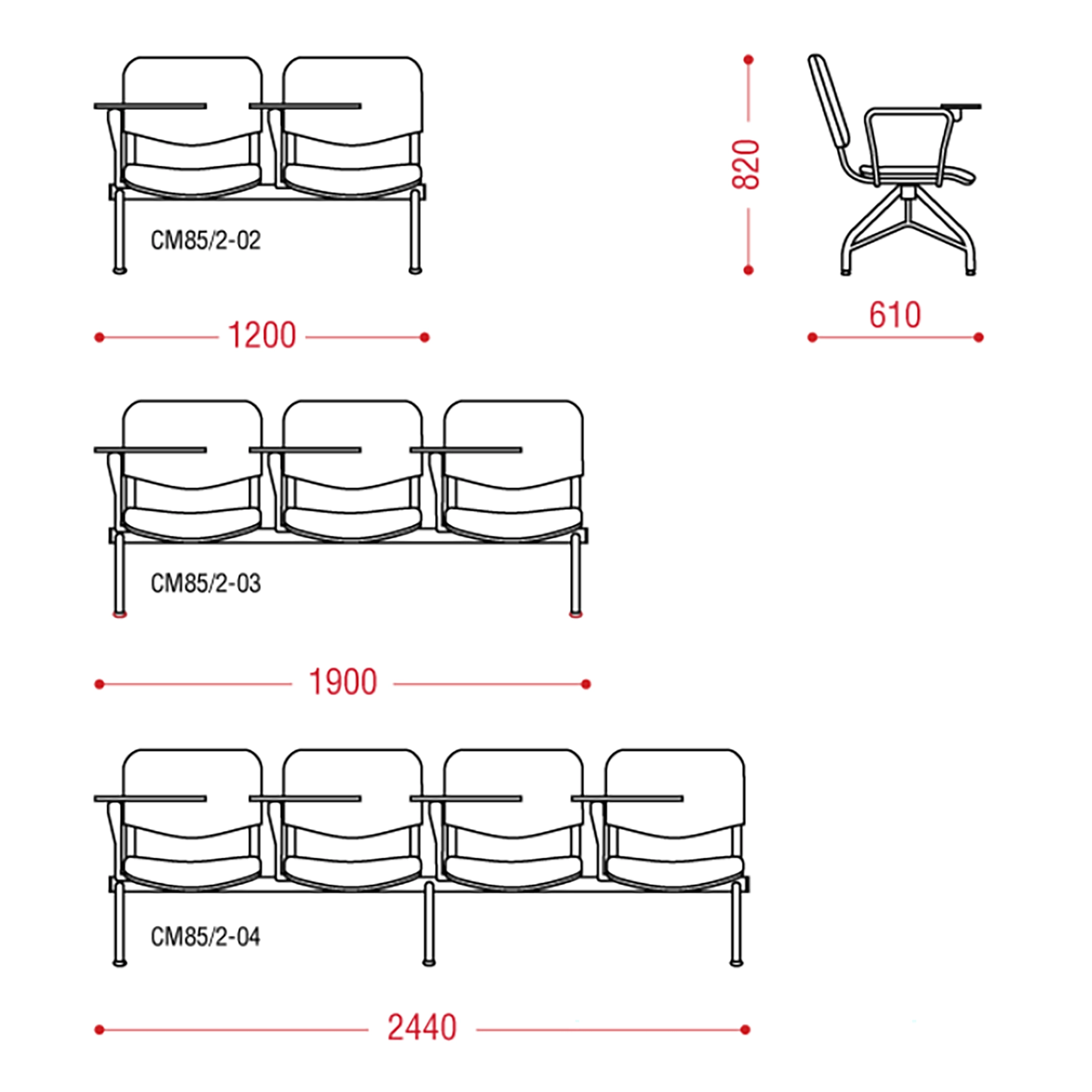 Многоместная секция Матис + (модель CМ 85/2) — это комфортное и функциональное решение для оснащения конференц-залов, лекционных аудиторий и переговорных. Эта многоместная секция прекрасно подходит для конференции или семинара. Откидные столики-пюпитры дают возможность делать записи, а мягкая обивка стула позволяет не отвлекаться на дискомфорт во время длительных лекций и докладов. Классический дизайн, надежность, проверенная временем, доступная цена — слагаемые популярности этой многоместной секции.