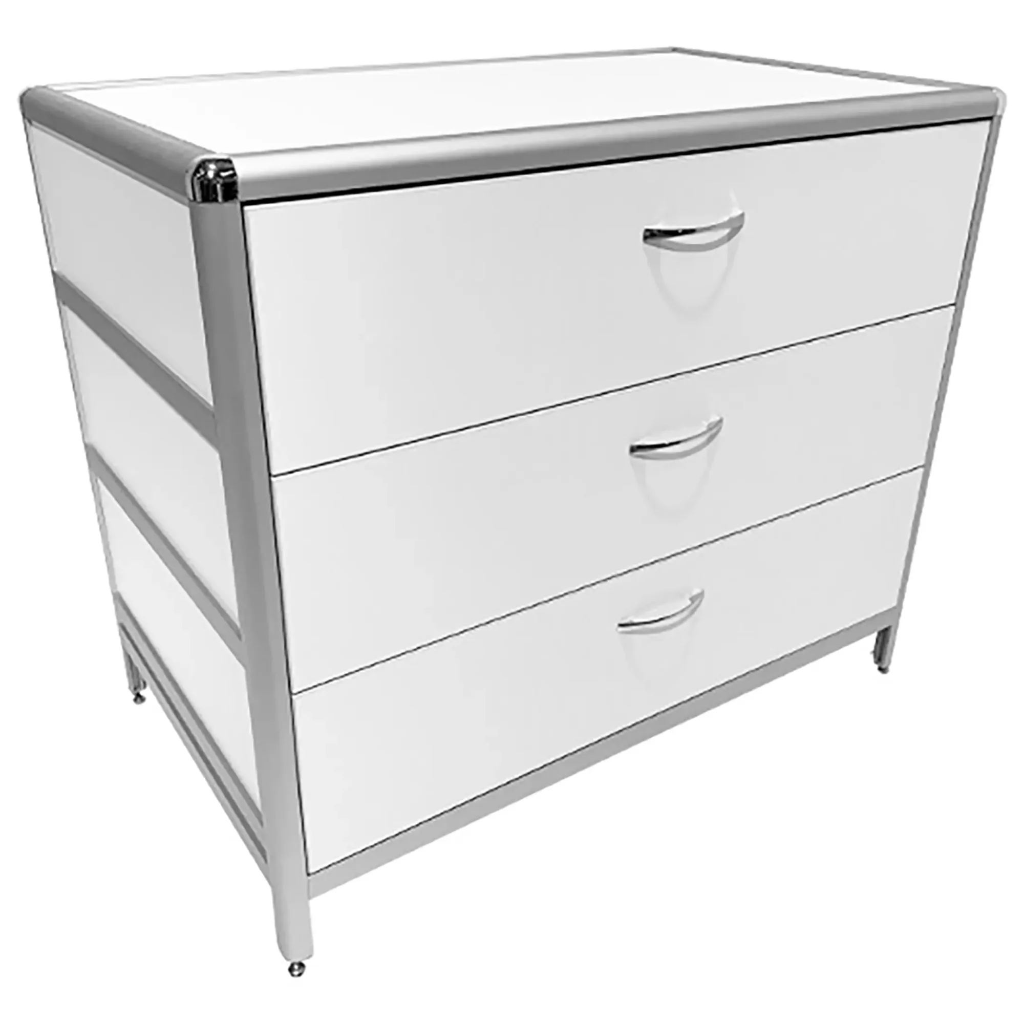Стол-тумба лабораторная MED 12.010al (белый) — это функциональное решение для хранения лабораторного инвентаря, приборов и материалов в лабораториях и медицинских учреждениях. Модель оснащена тремя выдвижными ящиками, расположенными под столешницей, размером 434х70х895 мм. Каркас выполнен из алюминиевого профиля, столешница из ЛДСП толщиной 16 мм.