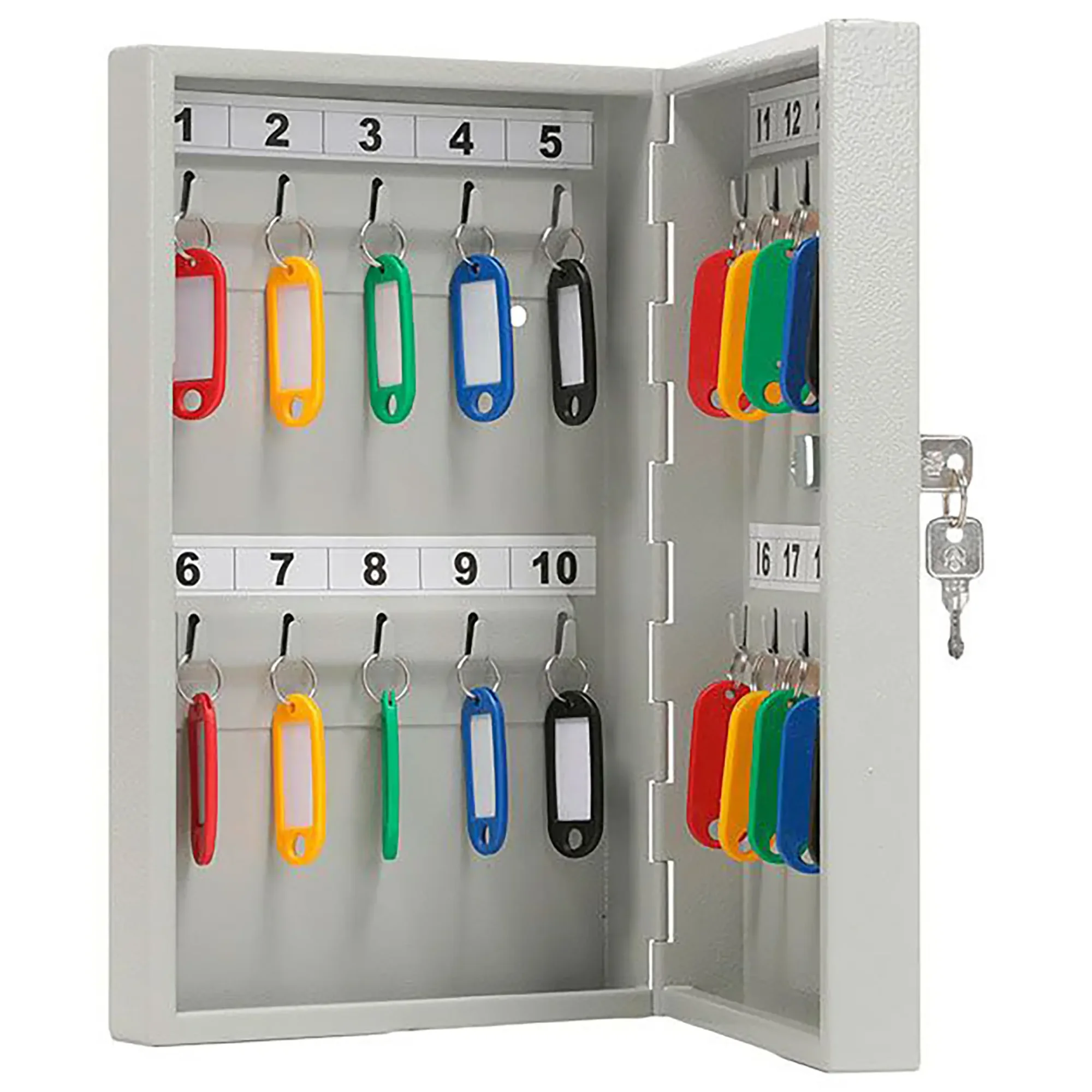 Ключница KEY-20 (с брелками) — это практичное и универсальное решение для наведения порядка и контроля за ключами в небольших гостиницах, офисах или на объектах с умеренным количеством помещений. Модель KEY-20 отличается оптимальным соотношением вместимости и габаритов, функциональной конструкцией и комплектуется набором брелков, что позволяет эффективно систематизировать и отслеживать ключи. Ключница предназначена для создания организованного пространства на стойке администратора, в диспетчерской или на проходной, обеспечивая быстрый доступ и предотвращая утерю.