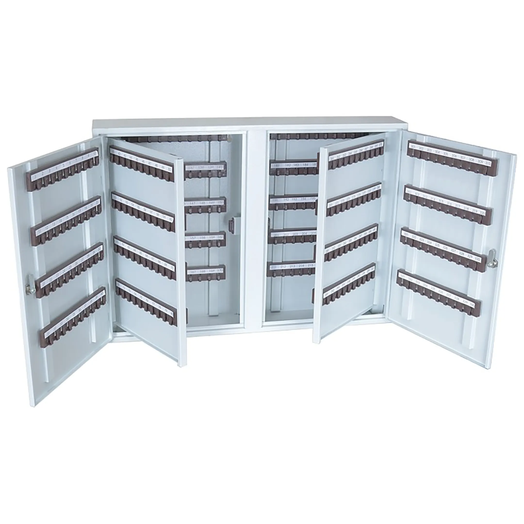 - Экстремальная вместимость для управления ключами мега-объекта — ключница рассчитана на хранение 340 ключей, что делает её решением для крупнейших объектов инфраструктуры: металлургических комбинатов, нефтеперерабатывающих заводов, аэропортов, портов или сетей федерального масштаба. Она позволяет централизованно контролировать доступ к тысячам помещений, единиц техники и спецоборудования.