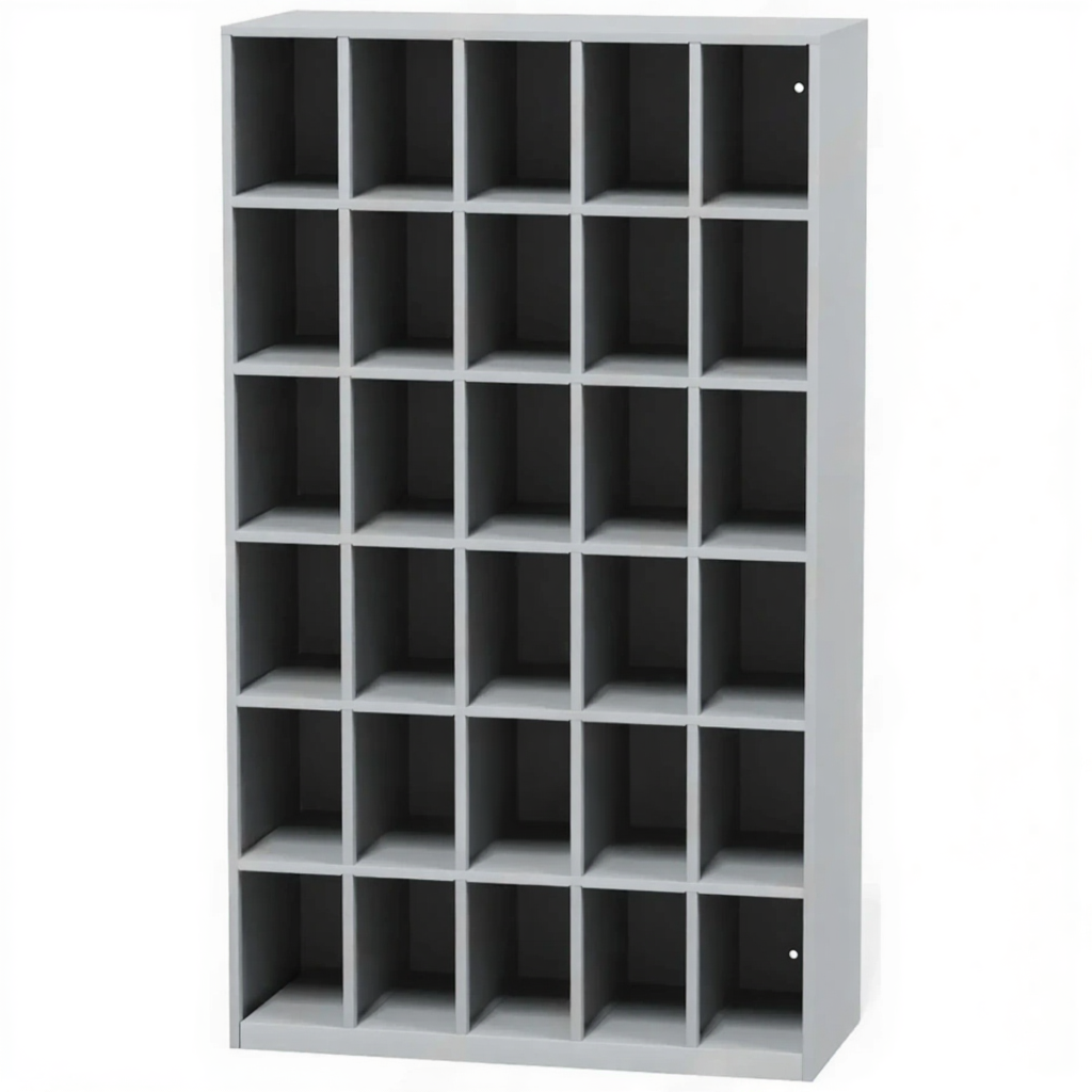 - Вместительность для группы пользователей — 30 индивидуальных ячеек обеспечивают достаточное количество мест для хранения обуви целого класса, отдела или спортивной группы, помогая поддерживать порядок в раздевалке.
