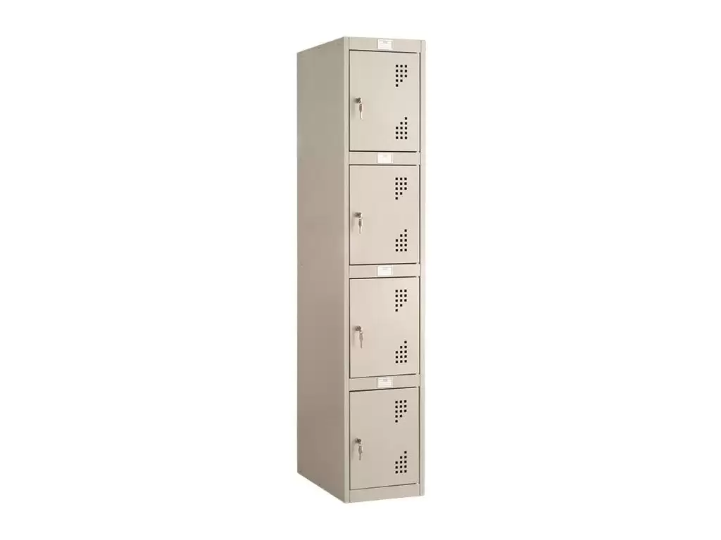 - Индивидуальные ячейки для хранения — шкаф оснащен отдельными отсеками, что позволяет удобно размещать сумки, рюкзаки и личные вещи.
