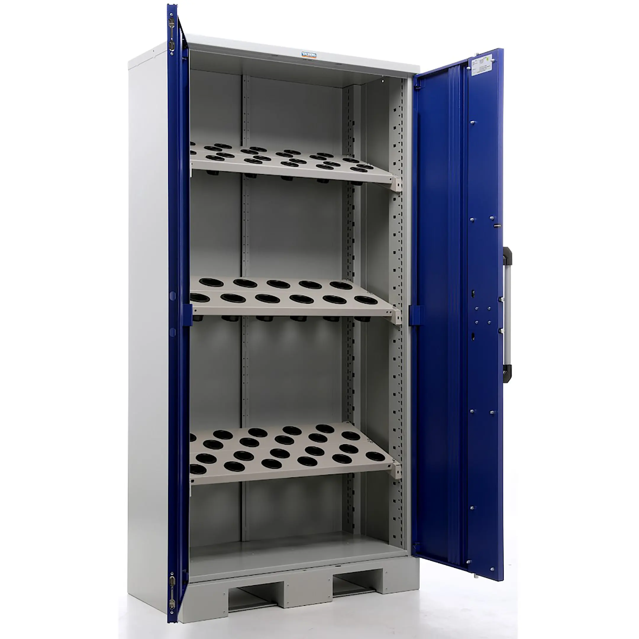 - Максимальная защита и безопасность — модель оснащена усиленной системой запирания (надежный замок, часто с несколькими точками фиксации), обеспечивающей высокий уровень защиты дорогостоящего инструментального парка от хищения и несанкционированного доступа. Плотные дверцы защищают оснастку от цеховой пыли, стружки и влаги.