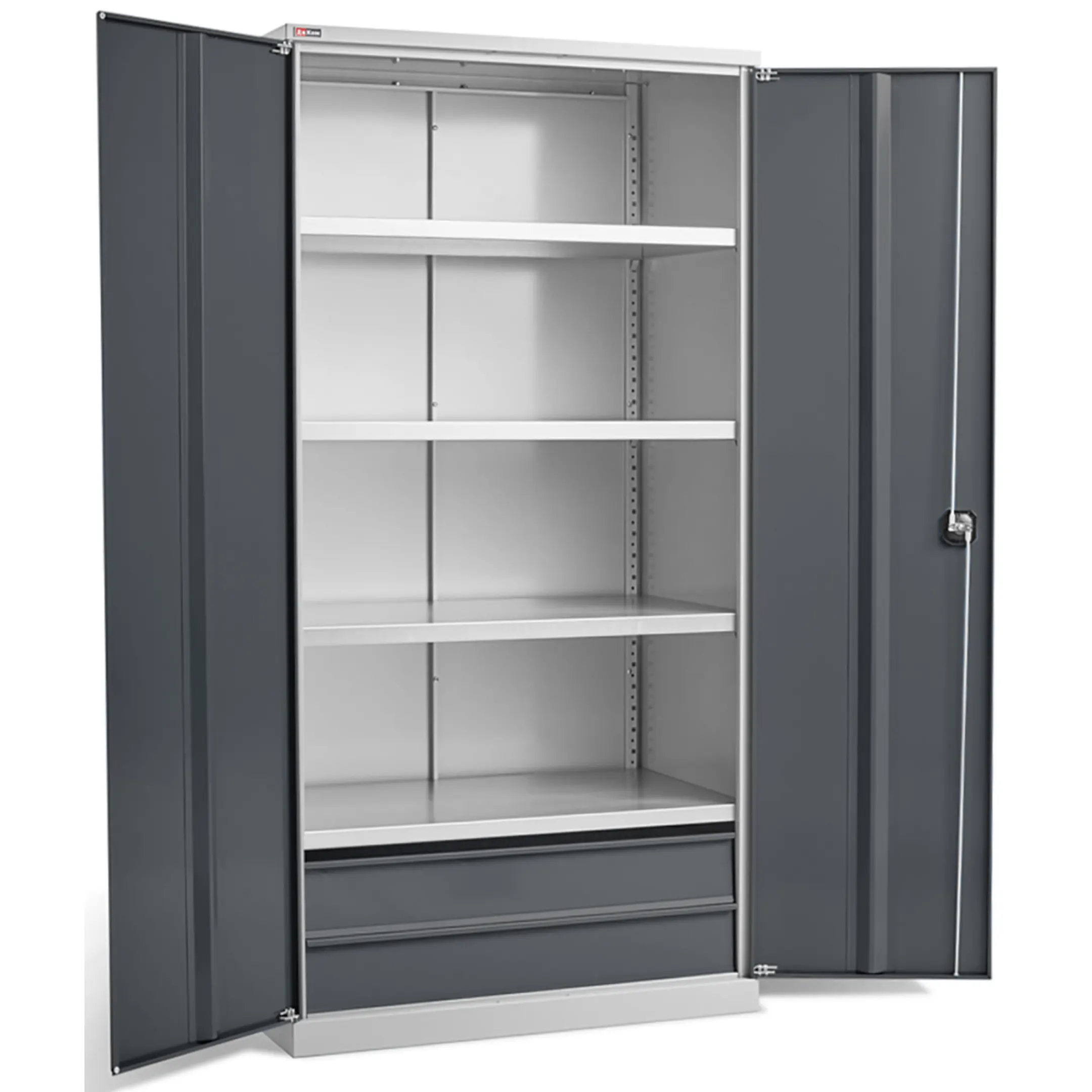 - Надежная защита инструментального парка — цельнометаллический корпус с запирающимися дверями обеспечивает сохранность дорогостоящего инструмента и оборудования от хищений, а также от пыли, стружки, влаги и случайных механических повреждений. Это особенно важно в общих мастерских или на учебных объектах.
