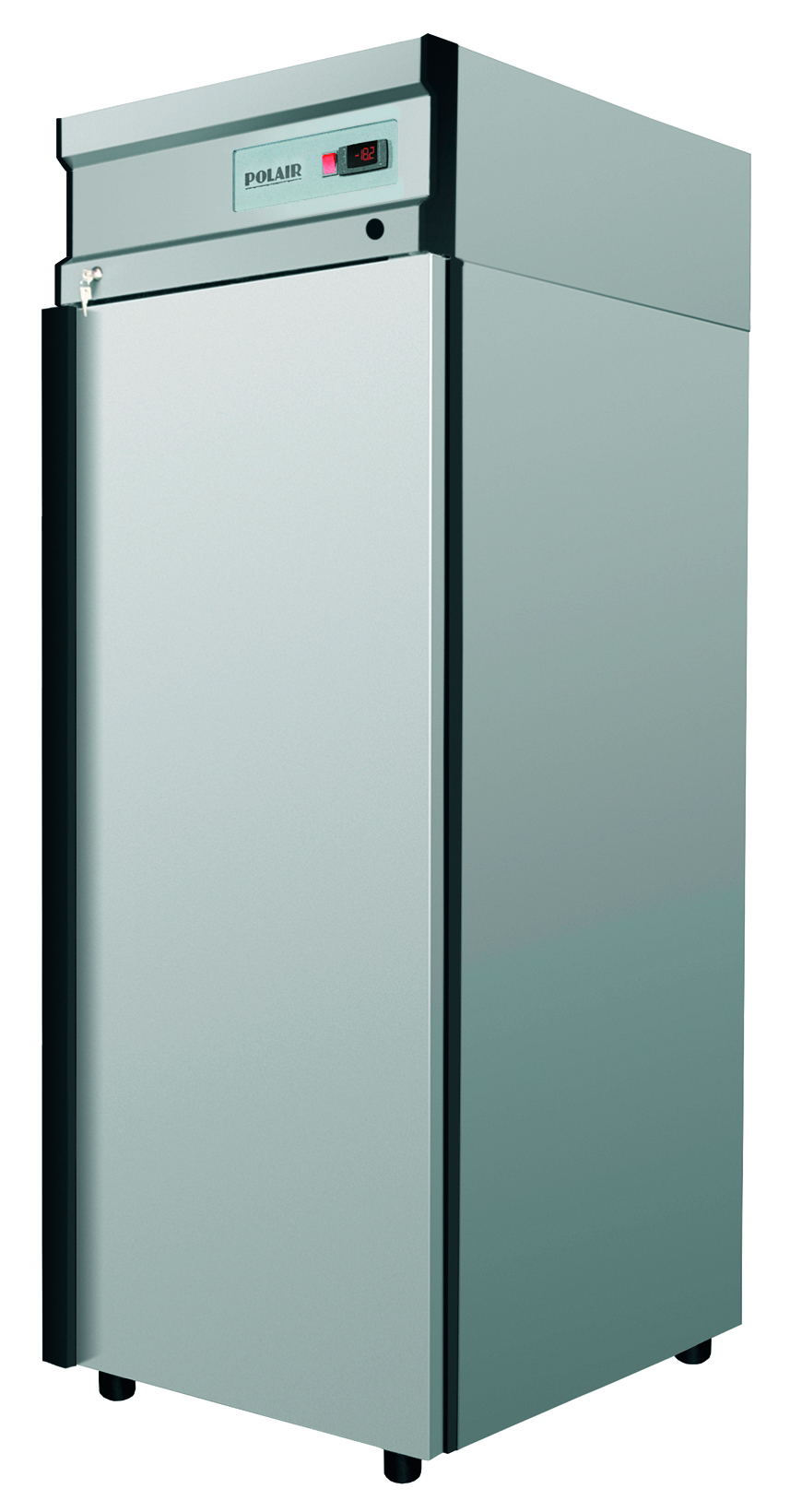 Особенности Корпус и камера из нержавеющей стали AISI 304 – долговечность и простота в уходе. Динамическое охлаждение – равномерное распределение температуры. Автоматическая оттайка с системой испарения конденсата. Работа при температуре до +40 °C и влажности до 80%. Компактная ширина – всего 697 мм при увеличенной глубине. Полки формата GN 2/1 (530x650 мм) – удобно для хранения гастроемкостей. 4 уровня хранения, нагрузка на полку – до 40 кг. Верхнее расположение агрегата – упрощает обслуживание. Подсветка камеры и замок на двери – в базовой комплектации. ПЭН обогрева дверного проёма и дренажной трубки. Экологичный хладагент R290 Описание Шкаф холодильный Polair CM107-G – это профессиональное оборудование из нержавеющей стали, предназначенное для хранения охлаждённых продуктов в кафе, ресторанах, пекарнях, супермаркетах и производственных цехах. Благодаря объёму 700 литров, температурному режиму от 0 до +6 °C и динамической системе охлаждения шкаф обеспечивает равномерное охлаждение на всех уровнях. Модель совместима с гастроемкостями GN 2/1 и отличается надёжностью, эргономикой и энергоэффективностью.