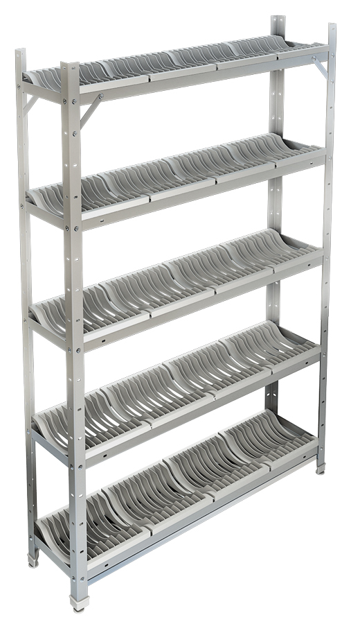 Стеллаж для сушки посуды ТЕХНО-ТТ СТР-215/903 предназначен для использования в столовых, ресторанах, барах, кафе. Стеллаж снабжен пятью полками, в которых имеются соты для вертикальной установки посуды. Снабжен поддонами для стока жидкости.
