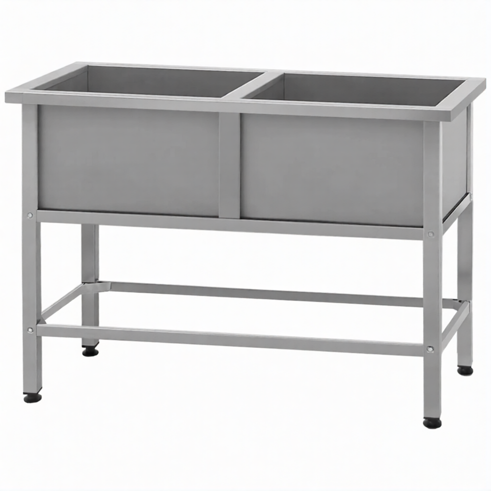 Ванна моечная ВМСн 700/2 2 м/о 600х600х350 (полка с отв. борт; ножка проф. тр. 40х40)