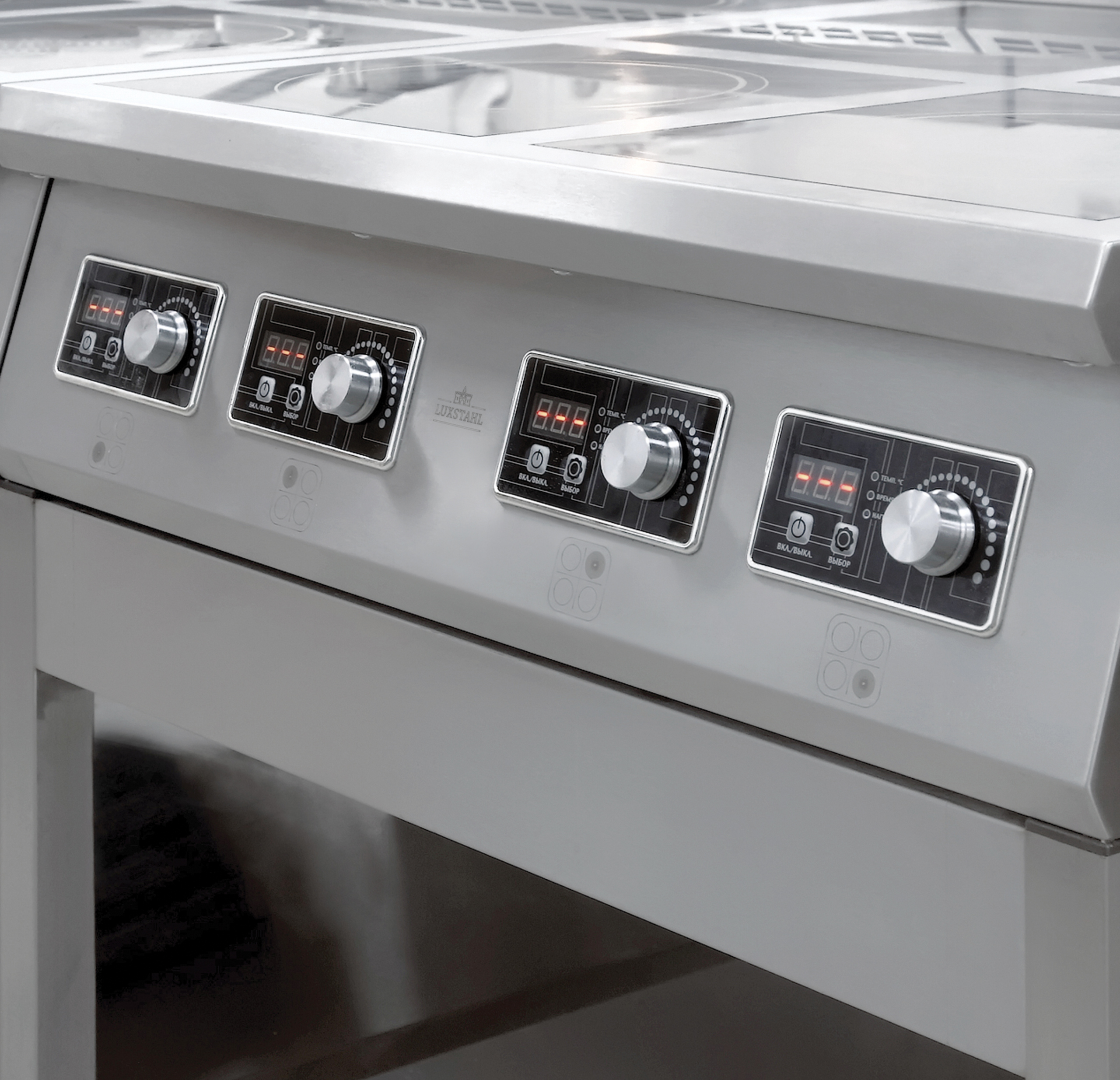 Индукционные плиты Luxstahl представлены в 3-х вариантах: на 2, 4 и 6 конфорок, мощностью по 3 500 Вт каждая.