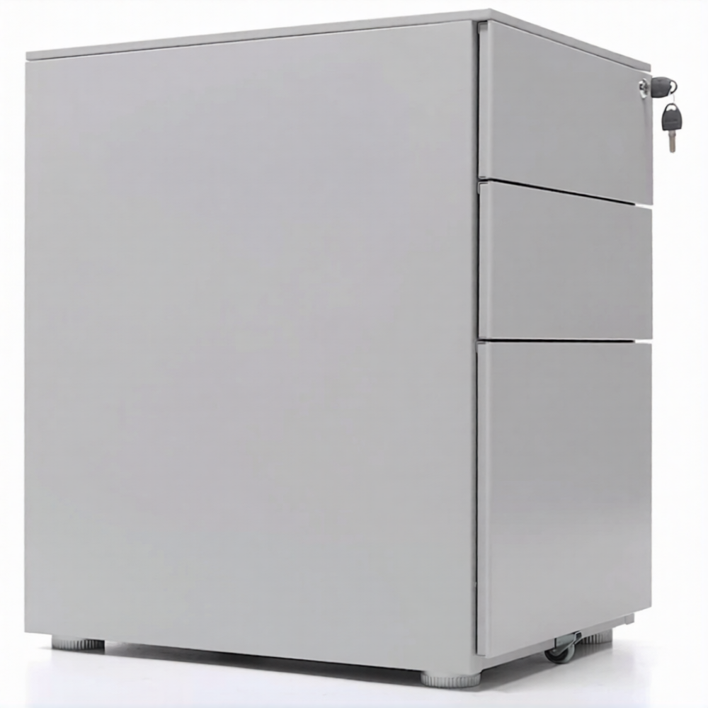 Опции: пластиковые лотки и металлический ящик для канцелярских принадлежностей и других предметов. Возможность комбинирования цветов: корпус + фасады ящиков и крышка (конструкция тумбы металл+металл). Или отделка фасадов ящиков и крыши тумбы ламинированной плитой ЛДСП (конструкция тумбы металл+ЛДСП)