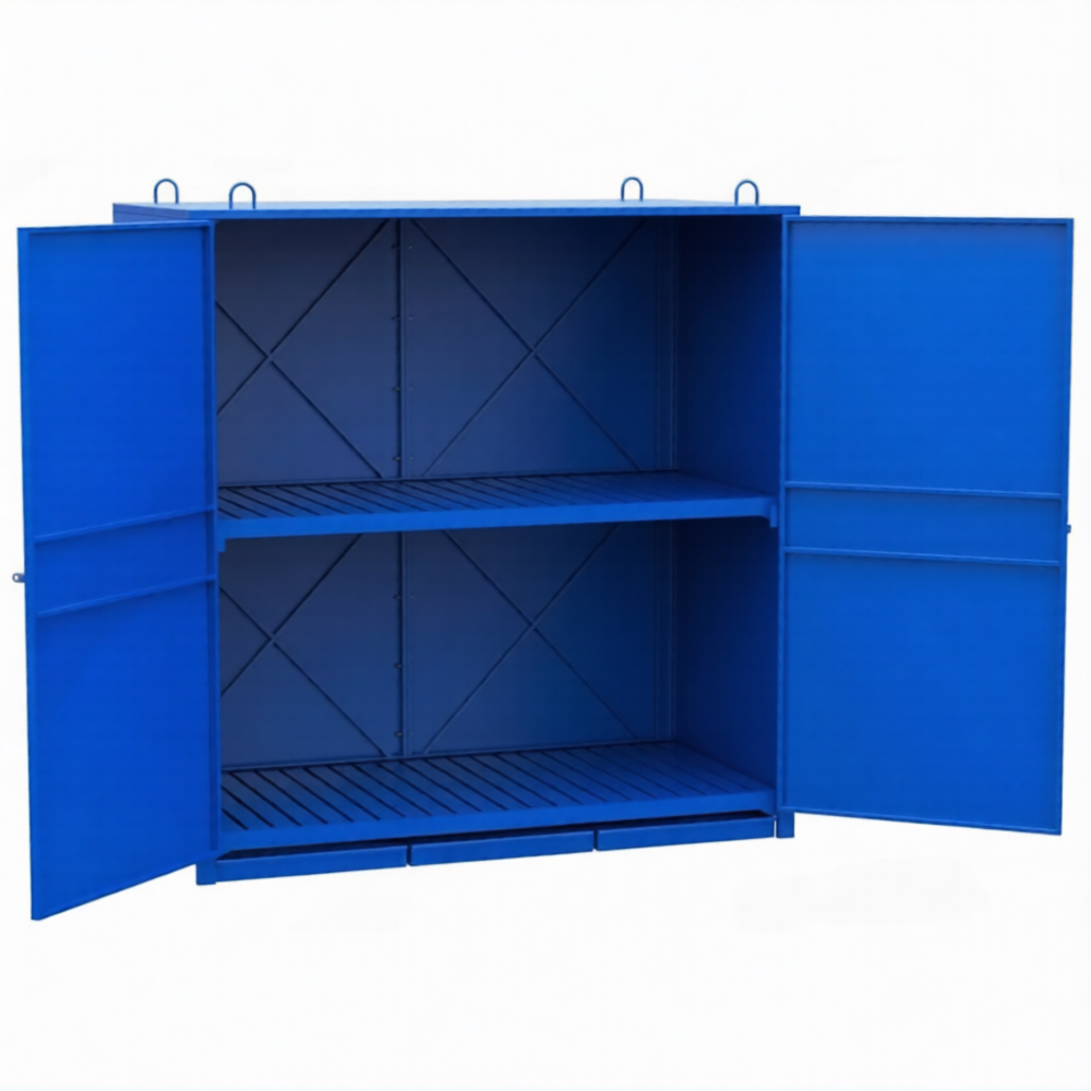 Шкаф для хранения 12-ти бочек 3000х2910х1550, металлический настил, сточный поддон — это промышленное и сверхнадежное решение для безопасного, организованного хранения большого количества бочек с жидкостями, химикатами, маслами или другими материалами на предприятиях, складах и в логистических центрах. Модель с габаритами 3000х2910х1550 мм представляет собой крупногабаритный металлический шкаф-навес, рассчитанный на 12 стандартных бочек, и оснащенный ключевыми элементами безопасности: металлическим настилом для удобного доступа и сточным поддоном для сбора возможных протечек.